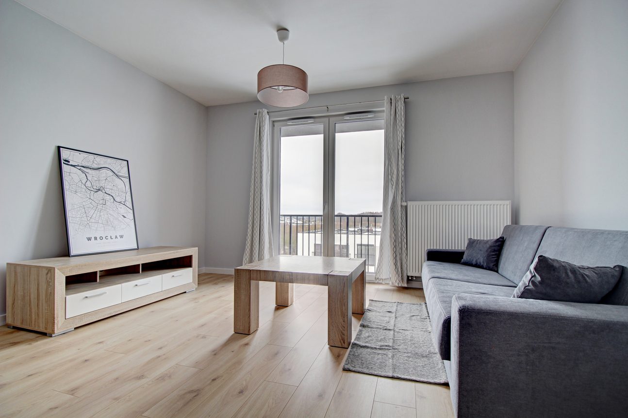 Lokal składa się z przestronnego salonu połączonego z aneksem kuchennym, sypialni, łazienki, przedpokoju oraz balkonu. W pełni wyposażone i umeblowane. Na życzenie najemcy możliwa jest zamiana łóżka w sypialni na łóżko 2-osobowe. W kuchni znajduje się zmywarka, lodówka, piekarnik, płyta grzewcza, okap. W łazience jest pralka i łazienka ze szklaną osłonką.